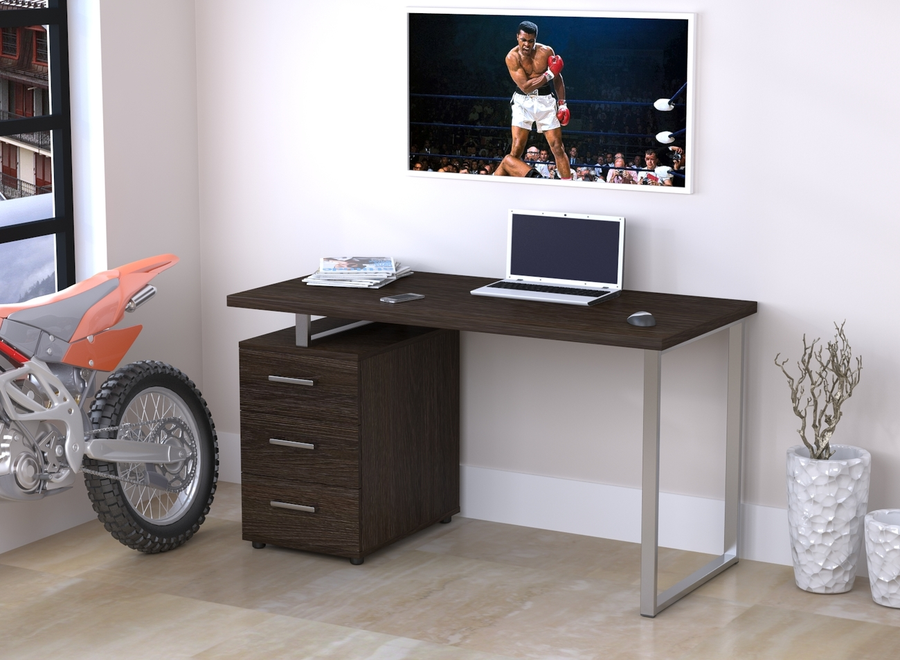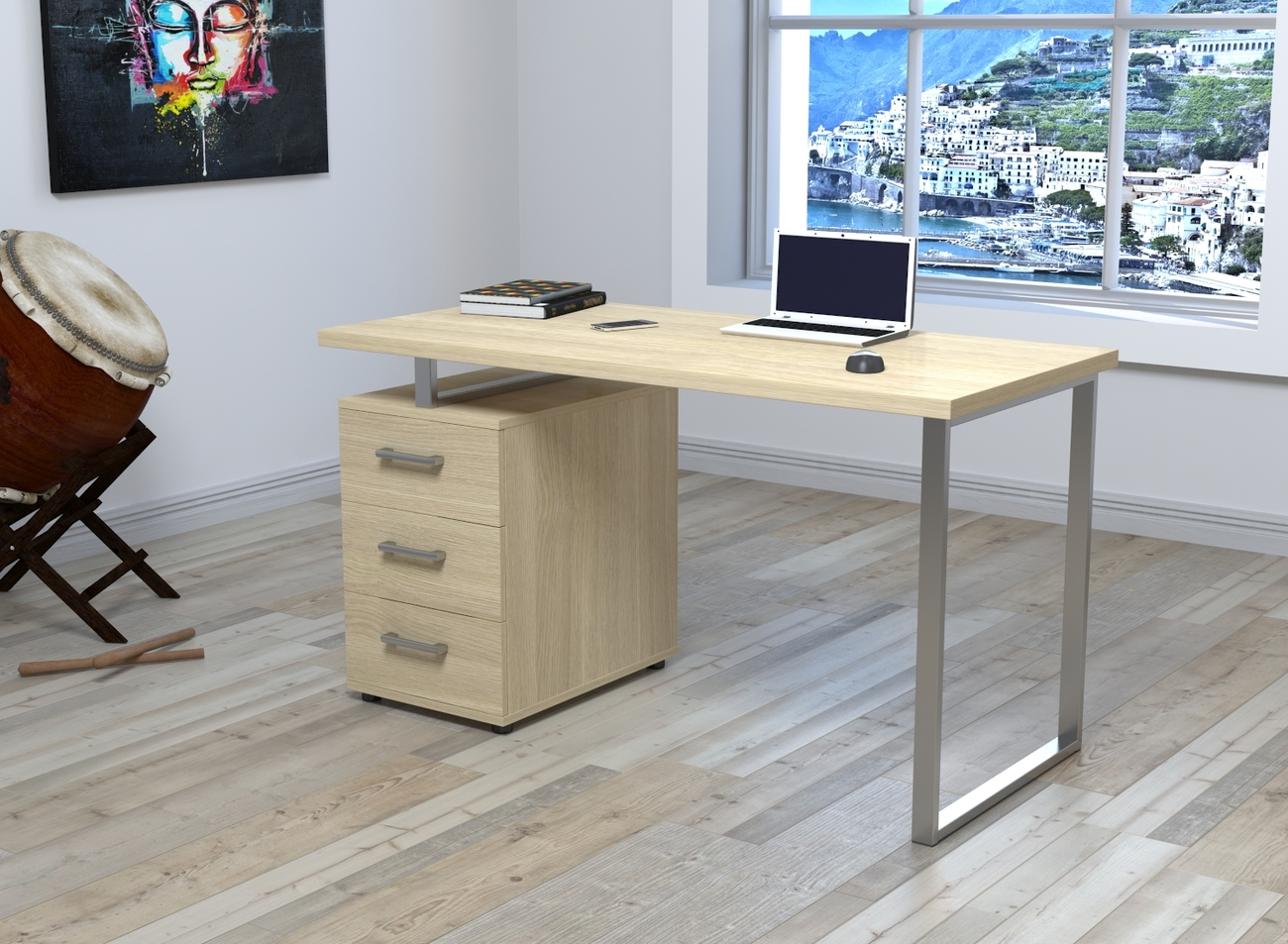 Тумба с тремя глубоким ящиками может быть собрана как с правой, так и с левой стороны стола.