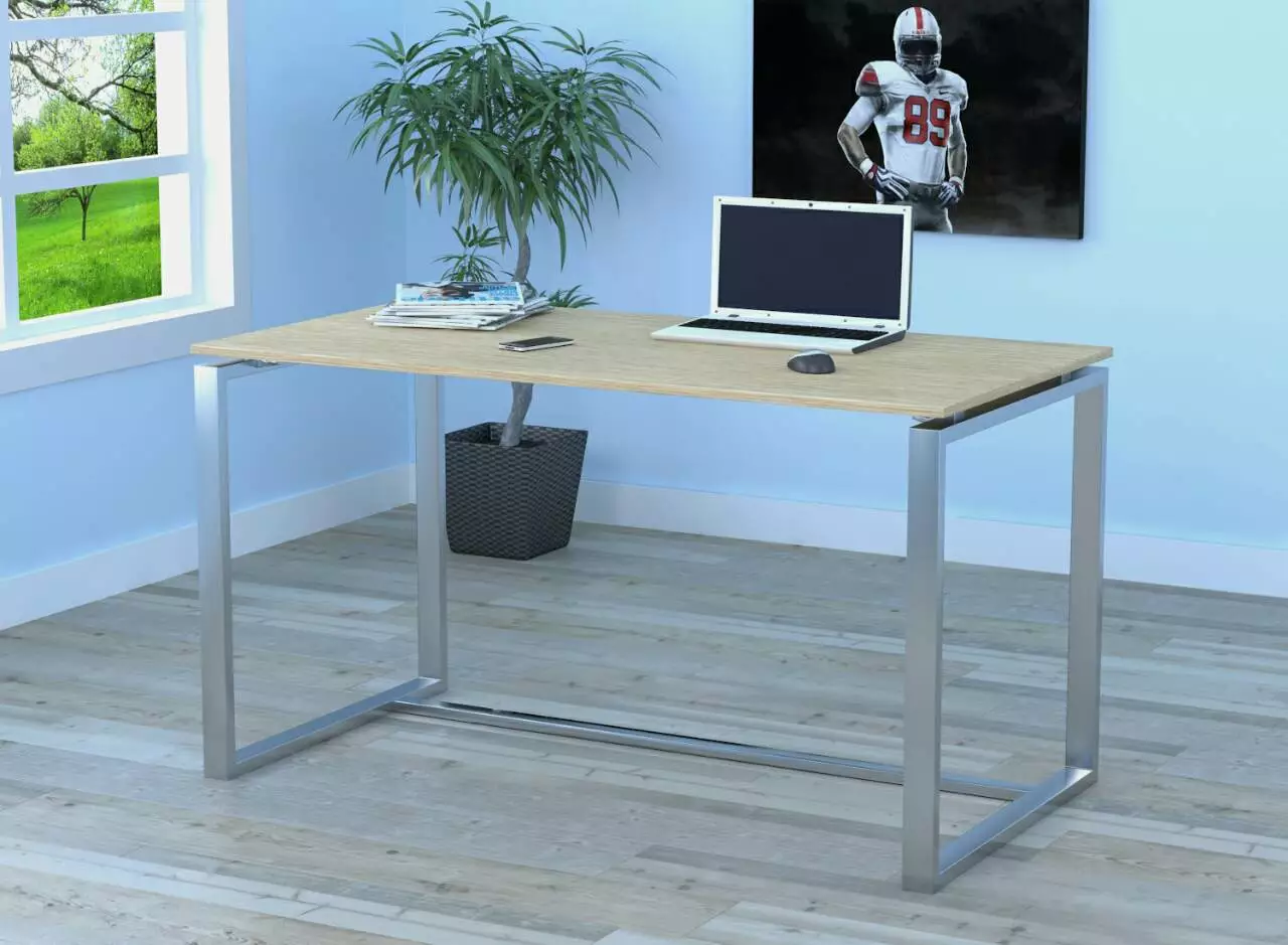 Ножки стола изготовлены из трубы с профилем 50*25 мм. Толщина стенки трубы - 2 мм. Цвет покраски металла - хром. Столешница выполнена из люксового ЛДСП толщиной 16 мм с кромкой 2 мм.