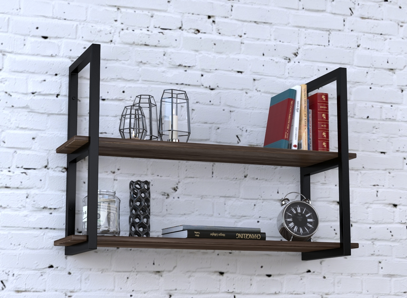 Полка состоит из двух металлических кронштейнов и двух полок из ламинированного ДСП толщиной 18 мм. Глубина полки 250 мм. Металлический профиль 25*25 мм.